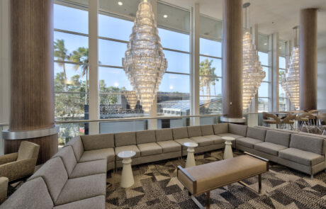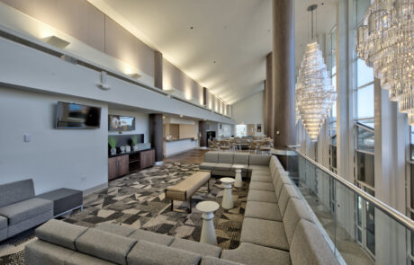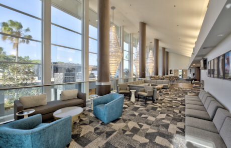 A longtime partner to the King Center and Eastern Florida State College, BRPH was delighted to help the client create a more streamlined bar and concessions area with enhanced menu offerings, as well as a lighter, more welcoming lobby featuring an artful installation for the donor wall, and art and memorabilia highlighting past performances dating back to its opening show, “Singing in the Rain” in 1988. The project also included updated finishes and furnishings in the Member’s Lounge on the mezzanine level and decorative metal screening with dramatic lighting at the entry porta cochere.